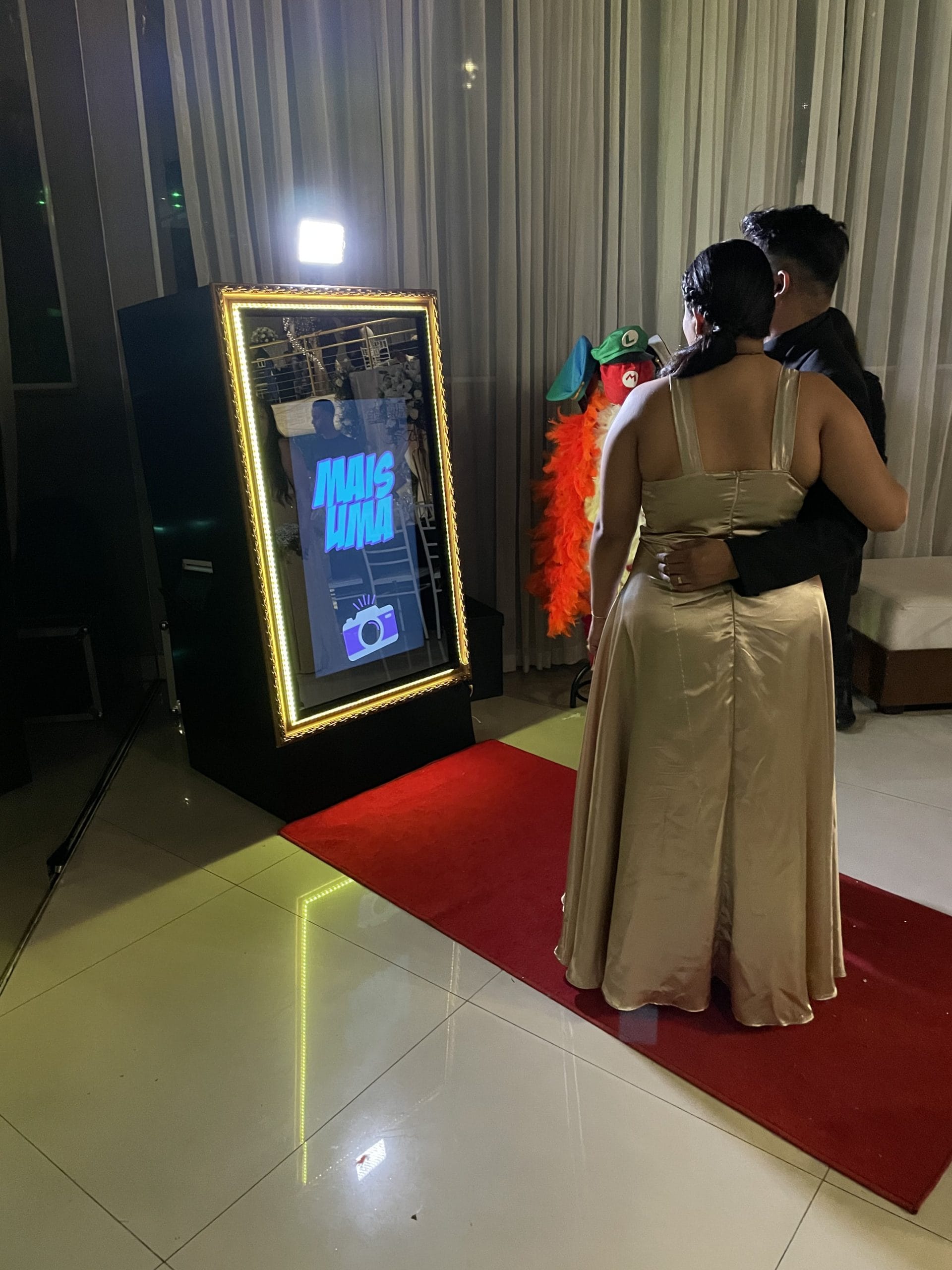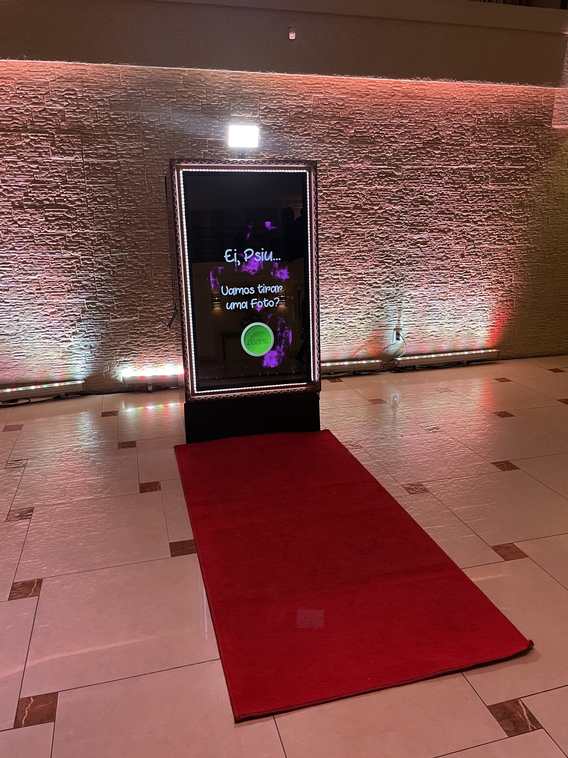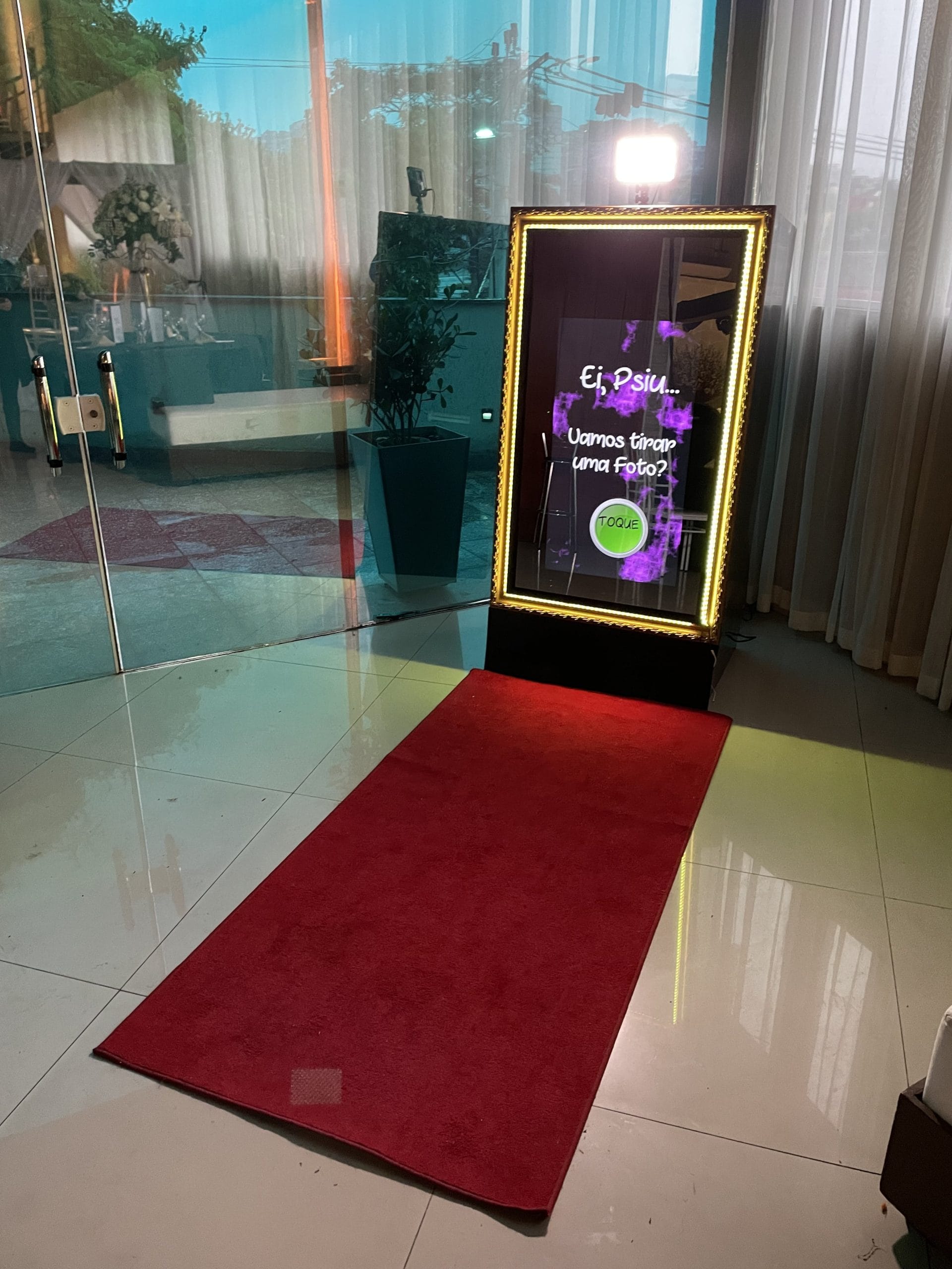 O Espelho Mágico é uma cabine fotográfica interativa em formato de espelho que combina tecnologia e diversão. Ele permite aos convidados do evento tirar fotos, interagir com animações, escrever mensagens personalizadas na tela e imprimir as imagens instantaneamente.