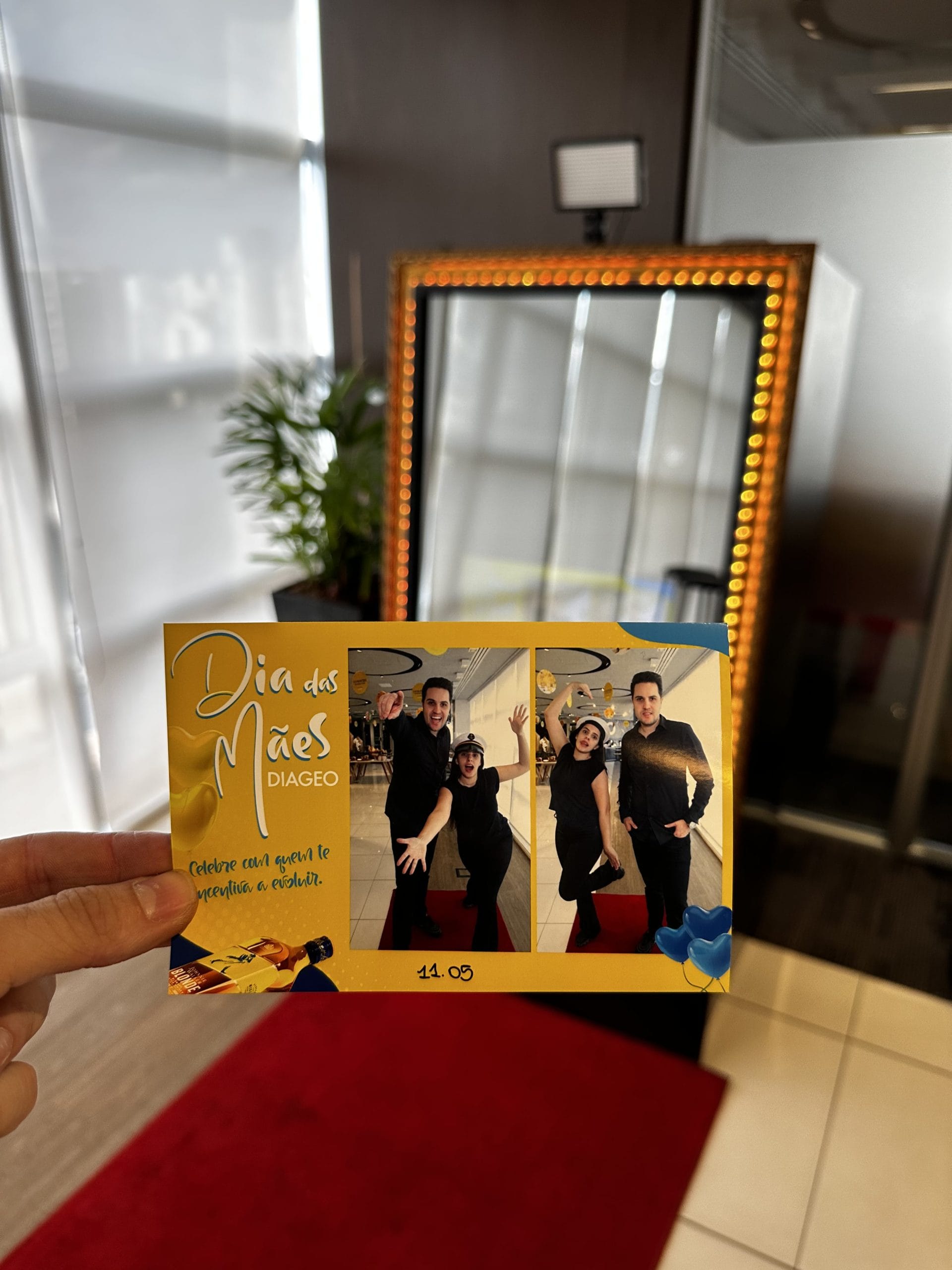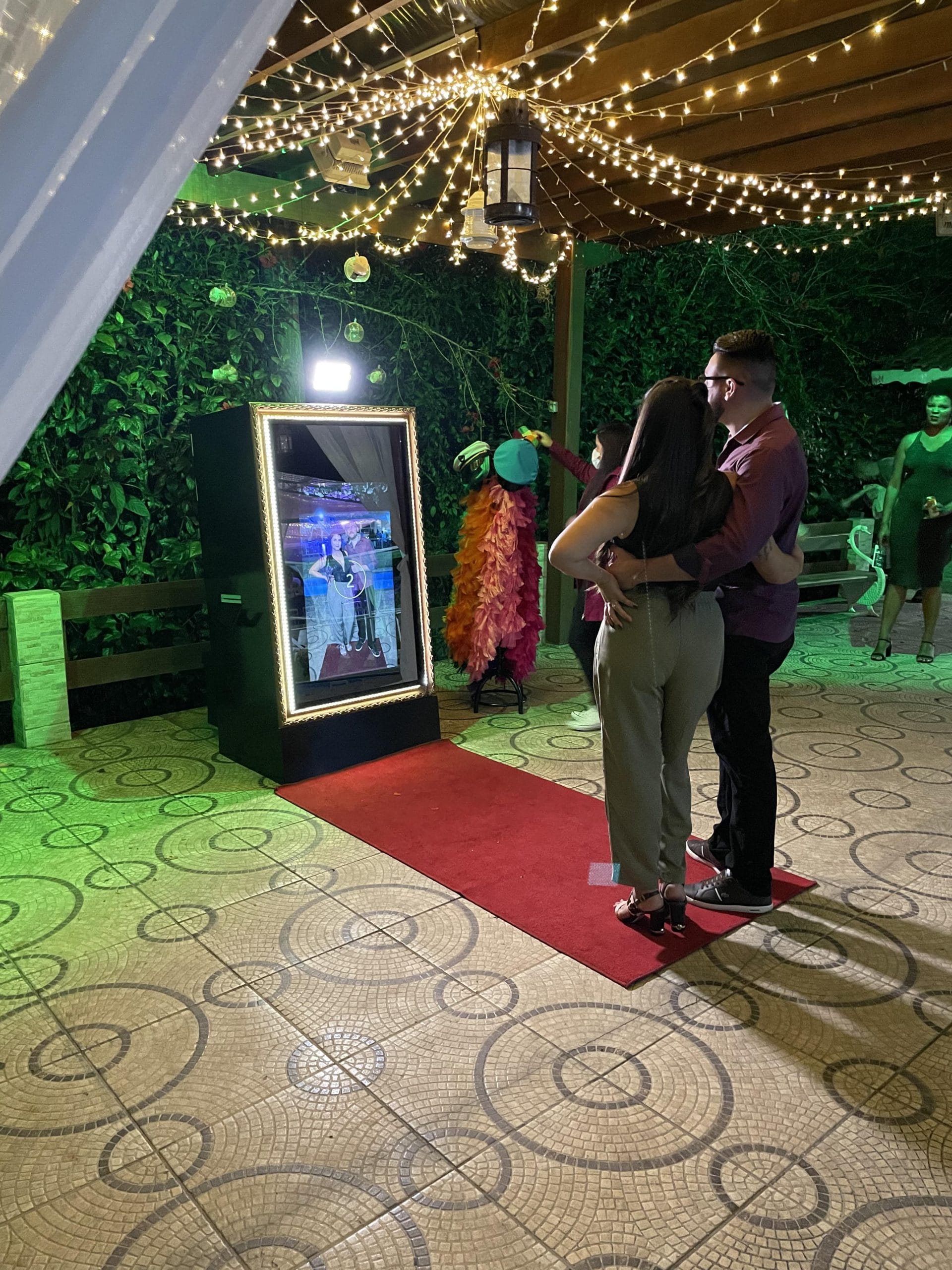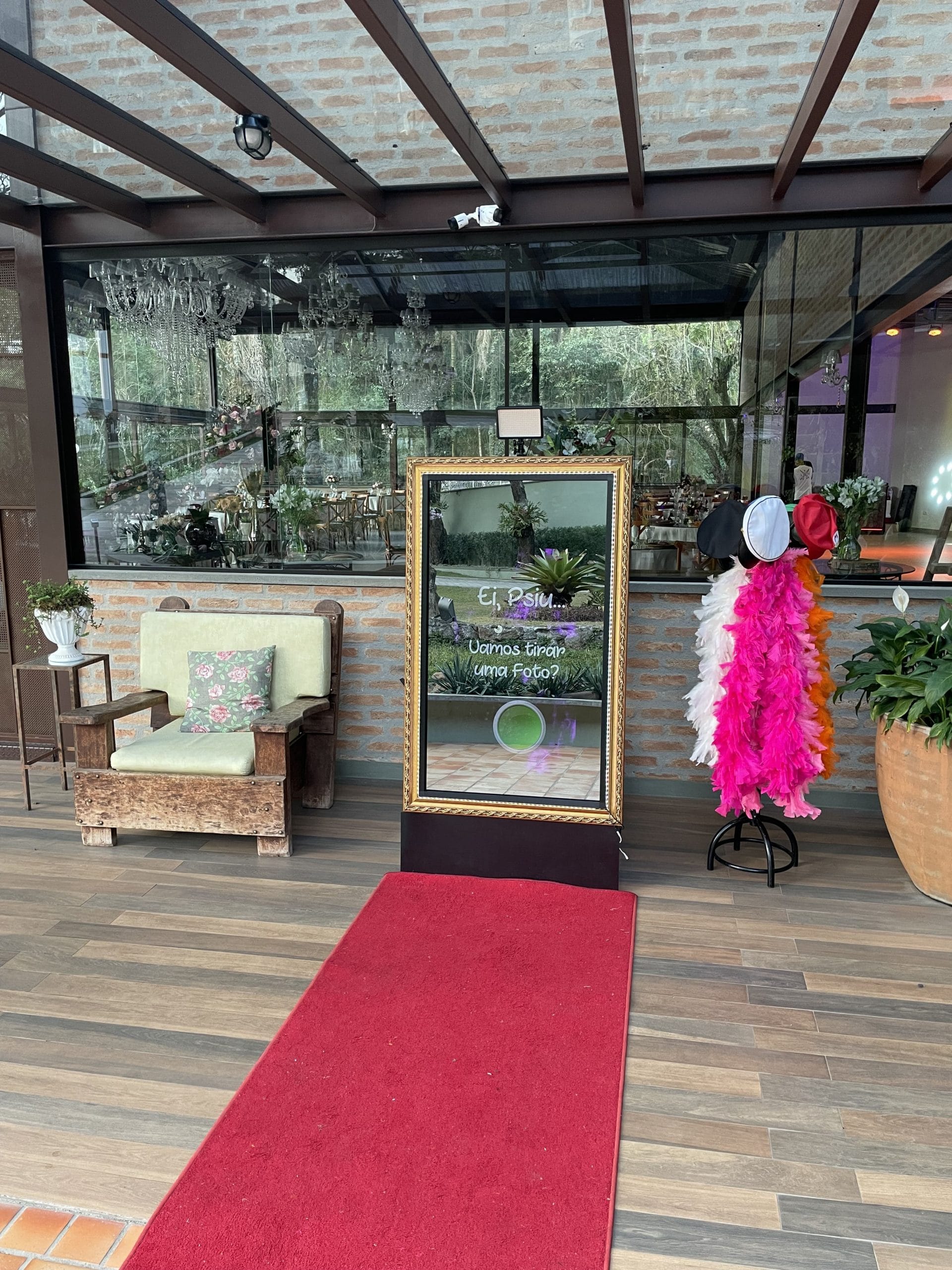 O Espelho Mágico é uma cabine fotográfica interativa em formato de espelho que combina tecnologia e diversão. Ele permite aos convidados do evento tirar fotos, interagir com animações, escrever mensagens personalizadas na tela e imprimir as imagens instantaneamente.
